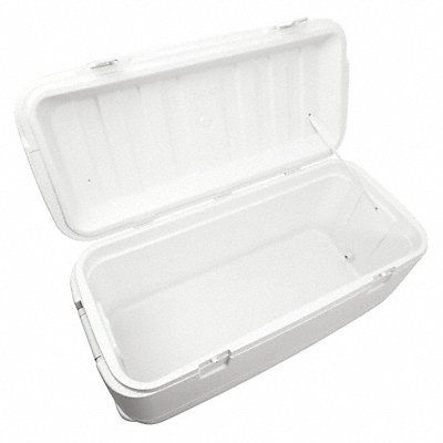 Chest Cooler Chest Cooler With Wheels No 120 qt Exterior Length 38 11/16 in Exterior Width 18 1/8 in Exterior Height 18 1/2 in Plastic Ice Retention Up to 5 days Body Color White Lid Color White Number of Cans 188
