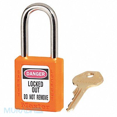 Lockout Padlock Body Color Orange Body Height 1 3/4 in Body Material Thermoplastic Body Thickness 3/4 in Body Width 1 1/2 in Header Danger Horizontal Shackle Clearance 25/32 in Key Style Standard Key Type Keyed Alike Non-Removable Key Yes Resistance Properties Chemical Resistant Shackle Diameter 1/4 in Shackle Height 1 1/2 in Shackle Material Steel Shackle Type Open Vertical Shackle Clearance 1 1/2 in Width Across Shackle 1/4 in Includes (2) Keys Labels