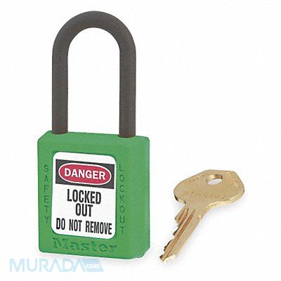 D1942 Lockout Padlock Body Color Green Body Height 1 3/4 in Body Material Thermoplastic Body Thickness 3/4 in Body Width 1 1/2 in Header Danger Horizontal Shackle Clearance 25/32 in Key Style Standard Key Type Keyed Different Non-Removable Key Yes Resistance Properties Non-Conductive Shackle Diameter 1/4 in Shackle Height 1 1/2 in Shackle Material Plastic Shackle Type Open Vertical Shackle Clearance 1 1/2 in Width Across Shackle 25/32 in