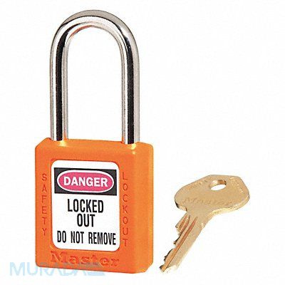Lockout Padlock Body Color Orange Body Height 1 3/4 in Body Material Thermoplastic Body Thickness 3/4 in Body Width 1 1/2 in Header Danger Horizontal Shackle Clearance 25/32 in Key Style Standard Key Type Keyed Different Non-Removable Key Yes Resistance Properties Chemical Resistant Shackle Diameter 1/4 in Shackle Height 1 1/2 in Shackle Material Metal Shackle Type Open Vertical Shackle Clearance 1 1/2 in Width Across Shackle 25/32 in Features Non-Conductive