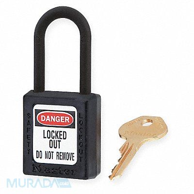 D1942 Lockout Padlock Body Color Black Body Height 1 3/4 in Body Material Thermoplastic Body Thickness 3/4 in Body Width 1 1/2 in Header Danger Horizontal Shackle Clearance 25/32 in Key Style Standard Key Type Keyed Different Non-Removable Key Yes Resistance Properties Non-Conductive Shackle Diameter 1/4 in Shackle Height 1 1/2 in Shackle Material Plastic Shackle Type Open Vertical Shackle Clearance 1 1/2 in Width Across Shackle 25/32 in