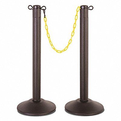 Heavy Duty Stanchion Application Outdoor or Indoor Post Dia 3 in Height 37 7/8 in Color Black and Yellow Post Material High Density Polyethylene Base Dia 14 1/2 in Base Material High Density Polyethylene Post Finish Unfinished Finish Matte Base Type Fillable For Use With Portable Posts Includes (2) Base Plugs (2) Bases (2) Posts (2) Yellow Chains (4) S-Hooks Fillable Yes 1 Pair