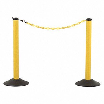 Heavy Duty Stanchion Application Outdoor or Indoor Post Dia 3 in Height 37 7/8 in Color Yellow Post Material High Density Polyethylene Base Dia 14 1/2 in Base Material High Density Polyethylene Post Finish Unfinished Finish Matte Base Type Dome For Use With Portable Posts Includes (2) Bases (2) Posts (2) Yellow Chain (4) S-Hooks Fillable Yes 1 Pair