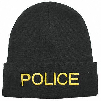Police Watch Cap Beanie Style Black with Gold Lettering Size Universal Adjustment Type Stretch Knit Material Acrylic Knit