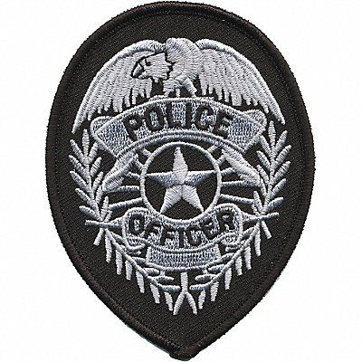 Embroidered Patch Material Rayon/Polyester Industry Type Law Enforcement Patch Type Badge Symbol Police Officer Color Silver/Black Size 2-3/4 in x 3-3/4 in