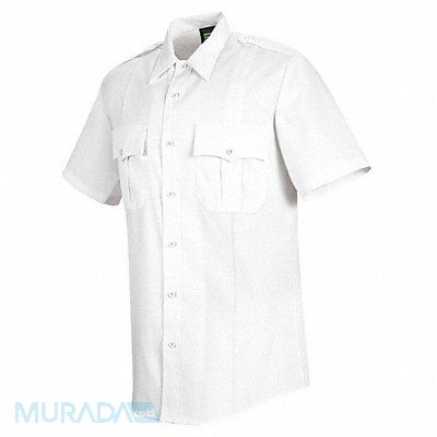 New Dimension Stretch Dress Shirt Short Sleeve Material 65 Percent Polyester/35 Percent Cotton Color White Neck Size 18-1/2 in Fits Chest Size 58 in Length 35 in Pockets 2 Fabric Weight 4.5 Oz.