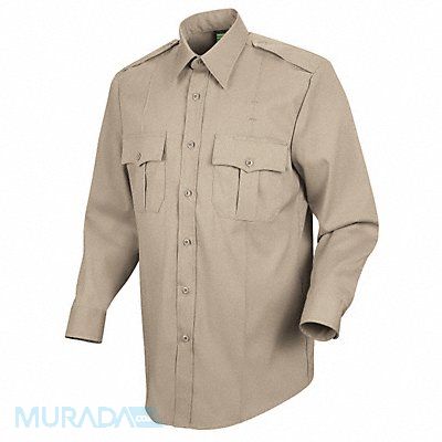New Dimension Stretch Dress Shirt Material 65 Percent Polyester/35 Percent Cotton Color Silver Tan Neck Size 18-1/2 in Fits Chest Size 58 in Sleeve Length 34 in Length 35 in Pockets 2 Fabric Weight 4.5 Oz.