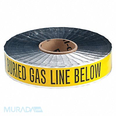 Detectable Underground Tape Legend Caution Buried Gas Line Below Yellow Material Metal Detectable Polyester Roll Length 1 000 ft Roll Width 2 in Thickness 5 mil Metal Detectable Yes Black Legend Color