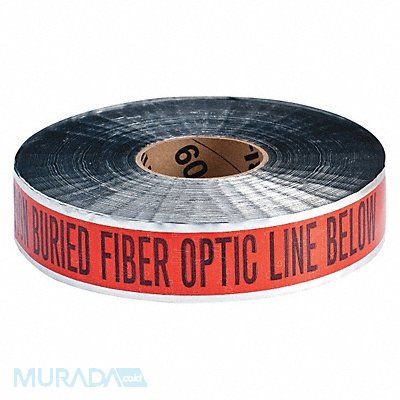 Detectable Underground Tape Legend Caution Buried Fiber Optic Line Below Orange Material Metal Detectable Polyester Roll Length 1 000 ft Roll Width 2 in Thickness 5 mil Metal Detectable Yes Black Legend Color