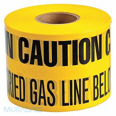 Underground Warning Tape Legend Caution Buried Gas Line Below Yellow Material Identoline(R) Heavy Duty Polyethylene Roll Length 1 000 ft Roll Width 6 in Thickness 4 mil Black Legend Color