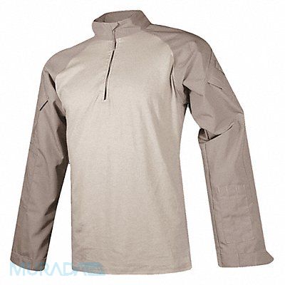 Tactical Polo Size XL Color Khaki Material 65 Percent Polyester 35 Percent Cotton Length 38 in Fits Chest Size 46 in to 48 in Sleeve Length 38 in Neck Size 21 in Closure Type Zipper Fabric Polyester/Cotton Pockets 2 Binding YKK Zipper Hook-and-Loop Fabric Weight 6.5 oz Features Zip Front Collar Adjustable Hook-and-Loop Cuff Shoulder Pockets External Elbow Pockets with Hook-and-Loop Closure Type Long Sleeve Includes Pen Pocket