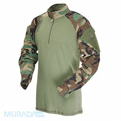 Tactical Polo Size L Color Woodland Material 50 Percent Nylon 50 Percent Cotton Length 35 in Fits Chest Size 42 in to 44 in Sleeve Length 35 in Neck Size 20 in Closure Type Zipper Fabric Nylon/Cotton Pockets 2 Binding YKK Zipper Hook-and-Loop Fabric Weight 6.5 oz Features Zip Front Collar Adjustable Hook-and-Loop Cuff Shoulder Pockets External Elbow Pockets with Hook-and-Loop Closure Type Long Sleeve Includes Pen Pocket