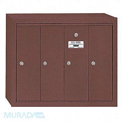 Vertical Mailbox 4 Number of Doors Color Bronze Height 19 In Depth 7 1/2 In Width 24 1/4 In Aluminum Box Material Front Loading Surface Mounting Door Material Aluminum Powder Coated Finish Net Weight 30 Lb USPS Standards