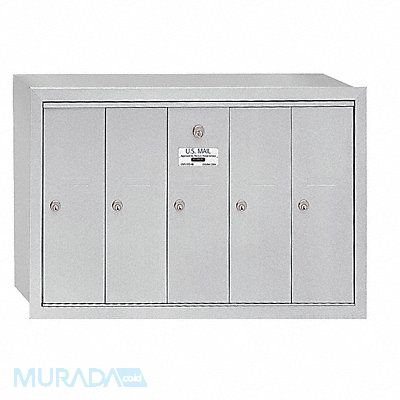 Vertical Mailbox 5 Number of Doors Color Aluminum Height 19 In Depth 7 1/2 In Width 29 3/4 In Aluminum Box Material Front Loading Recessed Mounting Door Material Aluminum Powder Coated Finish Net Weight 35 Lb USPS Standards