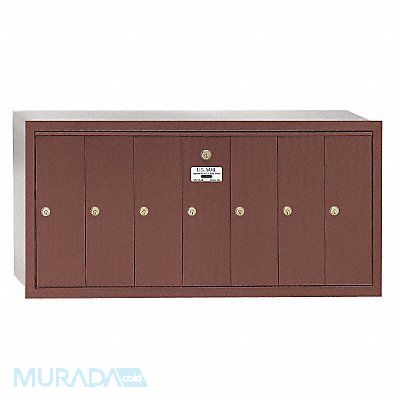 Vertical Mailbox 7 Number of Doors Color Bronze Height 19 In Depth 7 1/2 In Width 40 3/4 In Aluminum Box Material Front Loading Recessed Mounting Door Material Aluminum Powder Coated Finish Net Weight 45 Lb USPS Standards