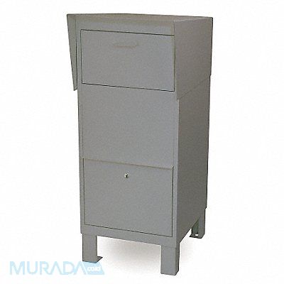 D0045 Courier Box Color Gray Height 49 In Depth 26 In Width 20 In Steel Box Material Front Loading Door Material Steel Powder Coated Finish Net Weight 160 Lb Includes Three Point Locking Mechanism and Three Keys