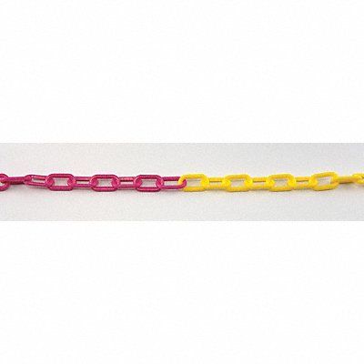 K6949 Plastic Chain Application Outdoor or Indoor 2 in 100 ft Alternating Magenta/Yellow Polyethylene Gloss Finish For Use With Crowd and Traffic Control Stanchions Garden Ground Post Stakes Hanging Plant Industrial Safety Cones and Signs
