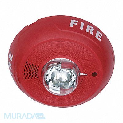 Horn Strobe Marked Fire Finish Unfinished Wall or Ceiling Mounting Alarm Current 43 to 222mA DC 60 to 257mA FWR Peak Output (dBA) 88 Flash (Candela) 15/30/75/110/135/185 Depth (In.) 3 13/16 in Height (In.) 7 13/16 in Length (In.) 7 13/16 in Width (In.) 7 13/16 in Ambient Temp Limits (F) 32 to 120 Degrees Humidity Range ( Percent RH) 10 to 93 Number Required 0 Voltage 12/24V DC Standards CSFM Includes Mounting Plate