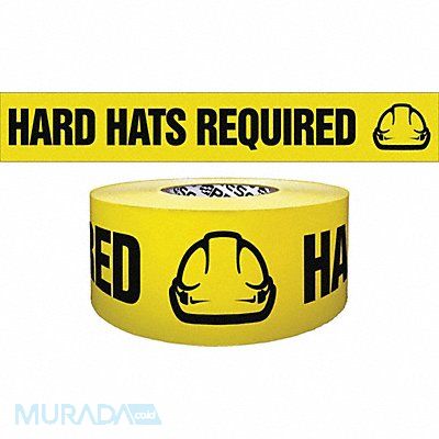 Barricade Tape Legend Hard Hats Required Yellow Material Polyethylene Roll Length 1 000 ft Roll Width 3 in Thickness 4 mil Standards OSHA 1910.144(a) Black Legend Color