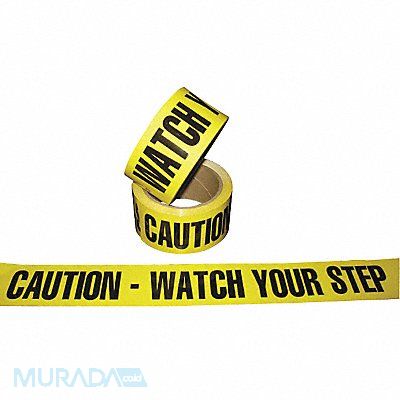 Barricade Tape Legend Caution Watch Your Step Black Yellow Material Vinyl Roll Width 2 in Thickness 0.216 in Operating Temp Range -40 Degrees to 180 Degrees F Standards L-S 300C FP-85 Type II Length 60 ft.
