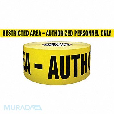 Barricade Tape Legend Restricted Area Authorized Personnel Only Yellow Material Reinforced Polypropylene Roll Length 500 ft Roll Width 3 in Thickness 4 mil Standards OSHA 1910.144(a) Black Legend Color