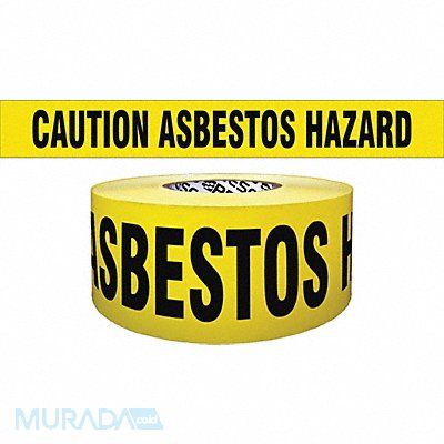 Barricade Tape Legend Caution Asbestos Hazard Yellow Material Polyethylene Roll Length 1 000 ft Roll Width 3 in Thickness 4 mil Standards OSHA 1910.144(a) Black Legend Color