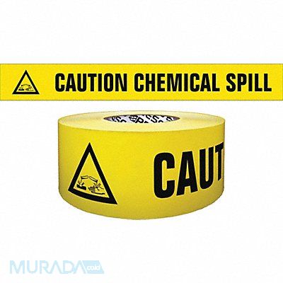 Barricade Tape Legend Caution Chemical Spill Yellow Material Reinforced Polypropylene Roll Length 500 ft Roll Width 3 in Thickness 4 mil Standards OSHA 1910.144(a) Black Legend Color