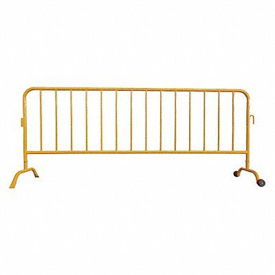 Crowd Control Barrier Steel Overall Height 40-1/2 in Overall Length 102 in Color Yellow Construction Welded Steel Net Weight 35.4 lb Pipe Diameter Frame 1-5/8 in Verticals 3/4 in Includes (1) Wheel Removable Feet (1) Curved Removable Feet