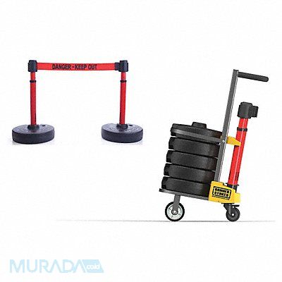 Plus Barricade System Belt Color Red Belt Message Danger - Keep Out Post Color Red Base Color Black Belt Length 15 ft Post Dia 2 3/8 in Post Height 22 in to 42 in Adjustable Post Material Plastic Base Dia 16 in Base Type Fillable with Water or Sand Base Material Plastic Cart Material Metal Overall Height 42 in Overall Width 16 1/2 in Overall Depth 23 1/4 in Includes (5) PLUS Barricade Bases (5) PLUS Barricade Retractable Tape Heads (5) PLUS Barricade Stakes Cart