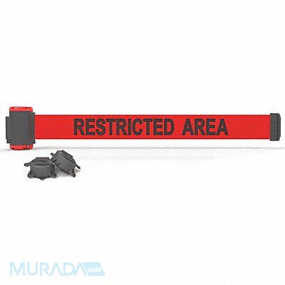 Magnetic Wall Mount Barrier Wall Mount Barrier Finish Plastic Belt Length 7 feet Belt Color RED Belt Message RESTRICTED AREA Mounting Style magnet or suction cup Includes 2 Suction Cups