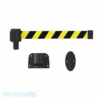 Retractable Belt Barrier Wall Mount Finish Matte Belt Length 15 ft Belt Color Yellow/Black Stripe Belt Message None Height (In.) 7 Width (In.) 3-1/2 Mounting Style Fixed/Removable Mounting Plate Includes Wall Mount Kit Banner Head Color Yellow/Black
