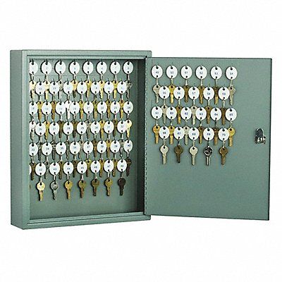 Key Cabinet Wall Mount Key Capacity (Units) 72 Height 17 1/4 in Depth 3 1/4 in Width 14 in Steel Built-In Numbered White Snap-Hook Key Tags Slotted Steel Key Racks Door Right Opening Finish Enamel For Use With Keys