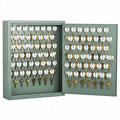 Key Cabinet Wall Mount Key Capacity (Units) 90 Height 17 1/4 in Depth 3 1/4 in Width 14 in Steel Built-In Numbered White Snap-Hook Key Tags Slotted Steel Key Racks Door Right Opening Finish Enamel For Use With Keys
