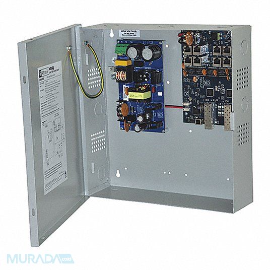 PoE Switch Camera Inputs 8 Input Voltage 115/230V AC Depth 3 1/4 in Height 13 1/2 in Width 13 in For Use With Video Surveillance Cameras Material Metal Plastic