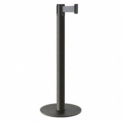 Barrier Post with Belt Post Material Steel Post Finish Black Wrinkle Post Height 40 in Post Dia 2 3/4 in Base Type Slim Profile Base Dia 14 1/2 in Base Material Steel Base Finish Powder Coated Number of Belts 1 Belt Length 7 ft Belt Color Gray Belt Message None Belt Width 2 in Includes Base and Single Retractable Belt Indoor ADA Compliance No