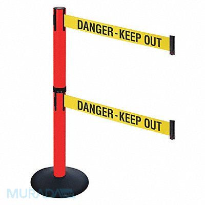 Barrier Post with Belt Post Material PVC Post Finish Powder Coated Post Height 40 in Post Dia 2 1/2 in Base Type Sloped Base Dia 14 in Base Material Cast Iron Base Finish Powder Coated Number of Belts 2 Belt Length 10 ft Belt Color Yellow with Black Text Belt Message Danger - Keep Out Belt Width 3 in Includes Hose Clamp Fixing and Wire Clip Belt End For Use With Portable Posts Mfr No SUB-ME SUB-SHOOK SUB-WH RE Indoor ADA Compliance No