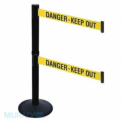 Barrier Post with Belt Post Material PVC Post Finish Powder Coated Post Height 40 in Post Dia 2 1/2 in Base Type Sloped Base Dia 14 in Base Material Cast Iron Base Finish Powder Coated Number of Belts 2 Belt Length 10 ft Belt Color Yellow with Black Text Belt Message Danger - Keep Out Belt Width 3 in Includes Hose Clamp Fixing and Wire Clip Belt End For Use With Portable Posts Mfr No SUB-ME SUB-SHOOK SUB-WH RE Indoor ADA Compliance No