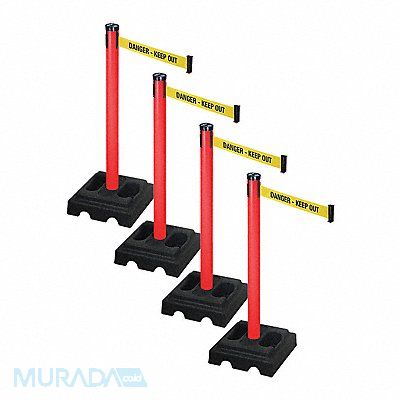 Barrier Systems Belt Color Yellow with Black Text Belt Message Danger - Keep Out Post Color Red Base Color Black Belt Length 10 ft Post Dia 2 1/2 in Post Height 40 in Post Material PVC Base Dia 15 in Base Type Square Base Material Rubber Cart Material Plastic Overall Height 44 1/2 in Overall Width 21 3/4 in Overall Depth 46 in Includes Four Posts and Bases