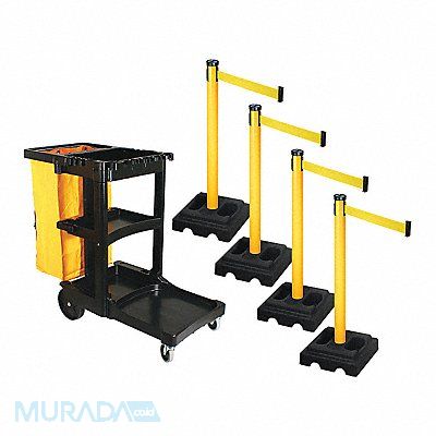Barrier Systems Belt Color Yellow Post Color Yellow Base Color Black Belt Length 10 ft Post Dia 2 1/2 in Post Height 40 in Post Material PVC Base Dia 15 in Base Type Square Base Material Rubber Cart Material Plastic Overall Height 44 1/2 in Overall Width 21 3/4 in Overall Depth 46 in Includes Barrier Cart Bungees and Yellow Bag Four Posts and Bases