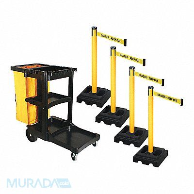 Barrier Systems Belt Color Yellow with Black Text Belt Message Danger - Keep Out Post Color Yellow Base Color Black Belt Length 10 ft Post Dia 2 1/2 in Post Height 40 in Post Material PVC Base Dia 15 in Base Type Square Base Material Rubber Cart Material Plastic Overall Height 44 1/2 in Overall Width 21 3/4 in Overall Depth 46 in Includes Barrier Cart Bungees and Yellow Bag Four Posts and Bases