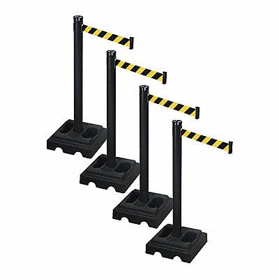 Barrier Systems Belt Color Black and Yellow Diagonal Striped Post Color Black Base Color Black Belt Length 10 ft Post Dia 2 1/2 in Post Height 40 in Post Material PVC Base Dia 15 in Base Type Square Base Material Rubber Cart Material Plastic Overall Height 44 1/2 in Overall Width 21 3/4 in Overall Depth 46 in Includes Four Posts and Bases