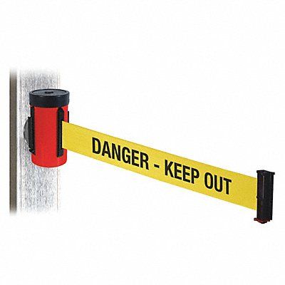 Retractable Belt Barrier Wall Mount Single Line Belt Finish Powder Coat Belt Length 10 ft Belt Color Yellow with Black Text Belt Message Danger Keep Out Height (In.) 4-3/4 Width (In.) 2-1/2 Mounting Style Magnet or Suction Cup For Use With Belt Banners Color Red