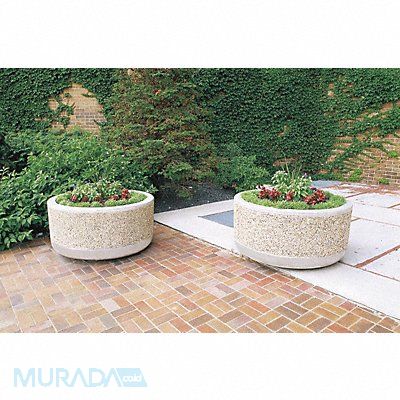 Security Planter Shape Round Outside Dia 48 in Overall Length 48 in Overall Width 48 in Overall Height 26 in Sand Wall Thickness 2.0 in Material Concrete Finish Weather Stone Net Weight 1 400 lb