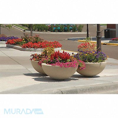 Security Planter Shape Round Outside Dia 60 in Overall Length 60 in Overall Width 60 in Overall Height 18 in Sand Wall Thickness 2.0 in Material Concrete Finish Weather Stone Net Weight 900 lb