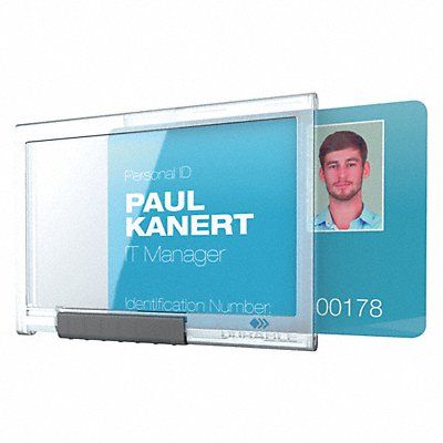 ID Card Holder Mono Number Series Blank Material Plastic Color Translucent Length 2 1/2 in Width 3 5/8 in Height 2 7/16 in Legend Blank For Use With Badges ID Cards Includes Badge Material Thickness 1/4 in Package Quantity 10