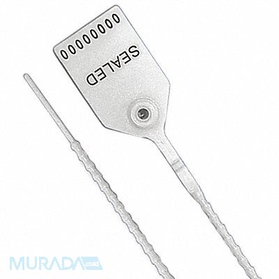 Pull-Tight Seals Plastic White Marking Parameters Consecutive Numbering SEALED Strap Length 18 in Strap Width 1/8 in Breaking Strength 50 lb Package Quantity 100