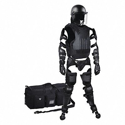 Riot Control Suit Modular Hard Shell Size 2XL Color Black Material Foam Padded Fits Chest Size 50 in to 54 in Closure Type Hook and Loop Includes Upper Body and Shoulder Protector Forearm Protector Thigh and Groin Protector Knee and Shin Guards Removable Foot Protector Gear Bag