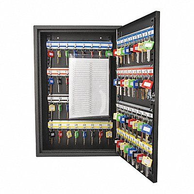 Key Cabinet Wall Mount Key Capacity (Units) 64 Height 18 in Depth 3 1/4 in Width 12 in Steel Built-In Key Hooks Door Right Opening Finish Matte For Use With Keys