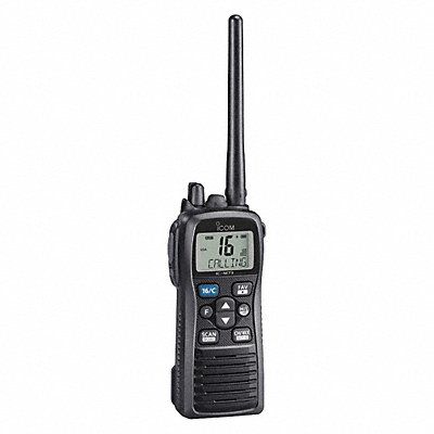Radio Application Marine Radio Classification General Radio Series Icom M73 Analog Band Type VHF Number of Channels 88 Output Watts 6 W Waterproof Yes Portable Two Way Radio RX 156.025 to 157.425 MHz TX 156.025 to 163.275 MHz Frequency Display Type LCD License Required No FCC Narrow Band Compliant No Length 2 1/2 in Width 4 59/64 in Height 1 3/16 in Selectable Frequencies No IPX8 IP Rating Navigation Aids None Channel Scan Yes Color Black Radio Type Handheld