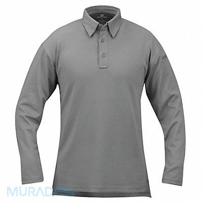 Tactical Polo Size XL Gray Fits Chest Size 46 in to 48 in Garment Style Tactical Polo Inseam 36-1/2 in Material 94 Percent Polyester/6 Percent Spandex Fabric Weight 8.0 oz Pockets 1 Type Long Sleeve Includes Mic Clips on Both Shoulders and Sunglasses Clip Under Placket Gusseted Mesh Underarm Extended Length